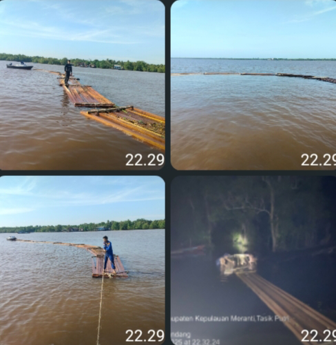 Proses evakuasi kayu olahan menuju dermaga sempat mengalami kendala akibat kondisi medan yang gelap, kawasan yang dikelilingi hutan bakau, serta kuatnya arus laut. Akibatnya, beberapa rakit kayu sempat pecah dan terlepas saat proses penarikan berlangsung.